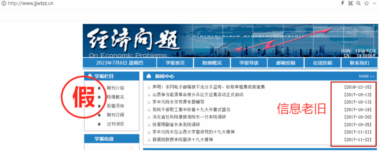 2.“克隆”页面内容德扑之星官网ღ◈。一些仿冒网站基本照搬照抄官方网站页面内容ღ◈,从期刊导读ღ◈、投稿指南到在线投稿ღ◈,各栏目一应俱全德扑之星官网ღ◈,看起来有模有样ღ◈。但细究却发现ღ◈,有的仿冒网站内容老旧ღ◈,更新不及时ღ◈,如期刊《经济问题》的仿冒网站ღ◈,网站新闻停留在2016年ღ◈、2017年ღ◈。
