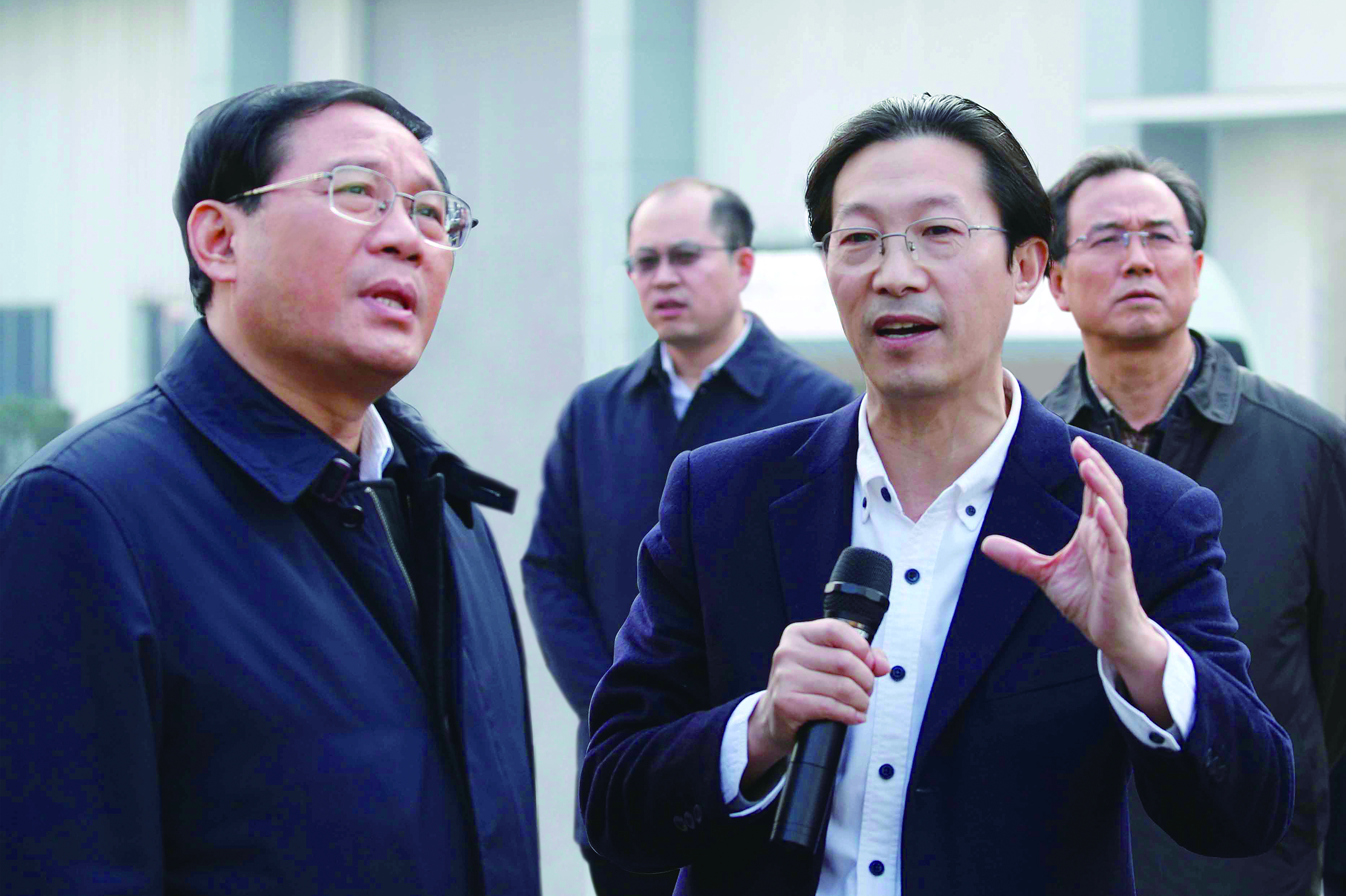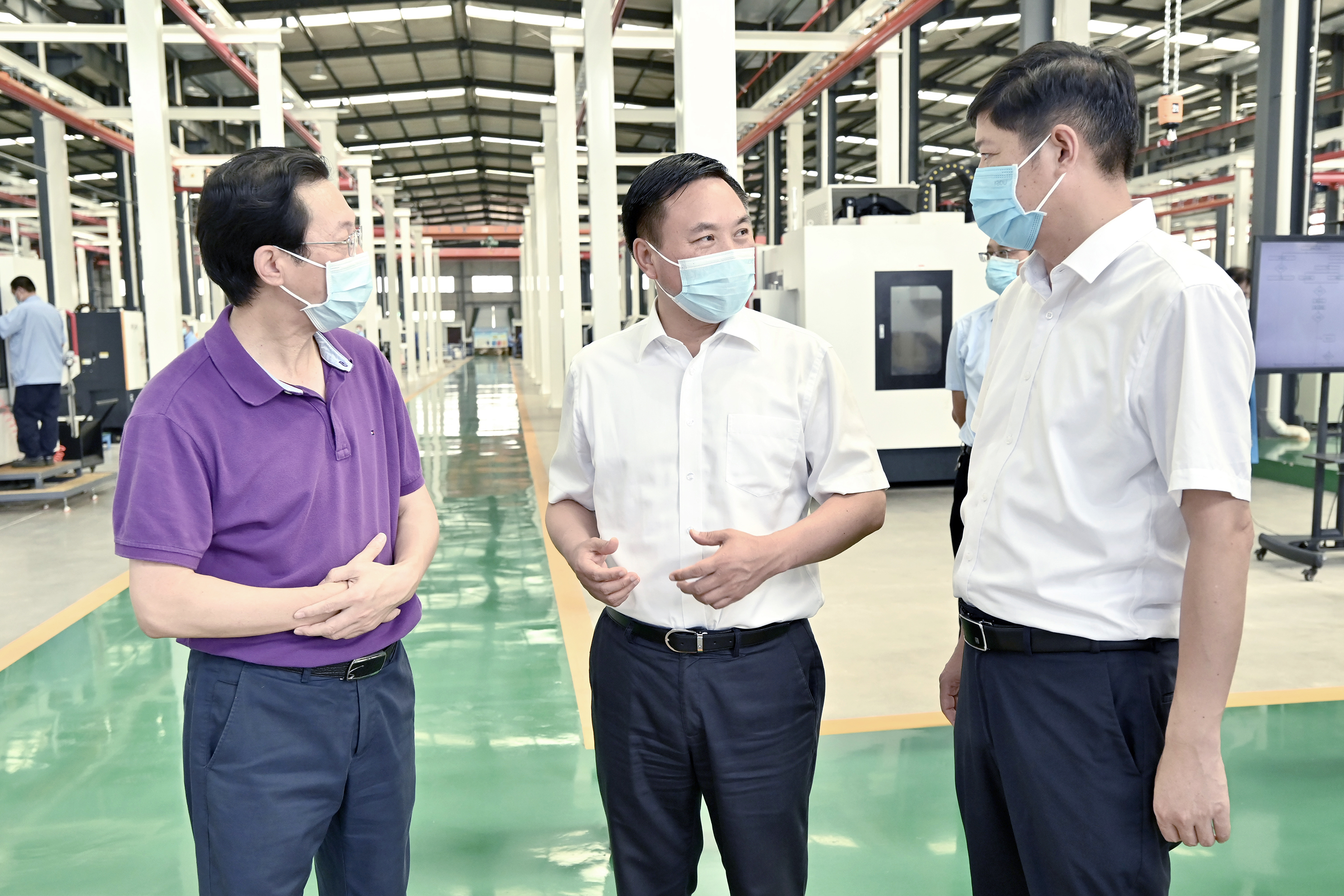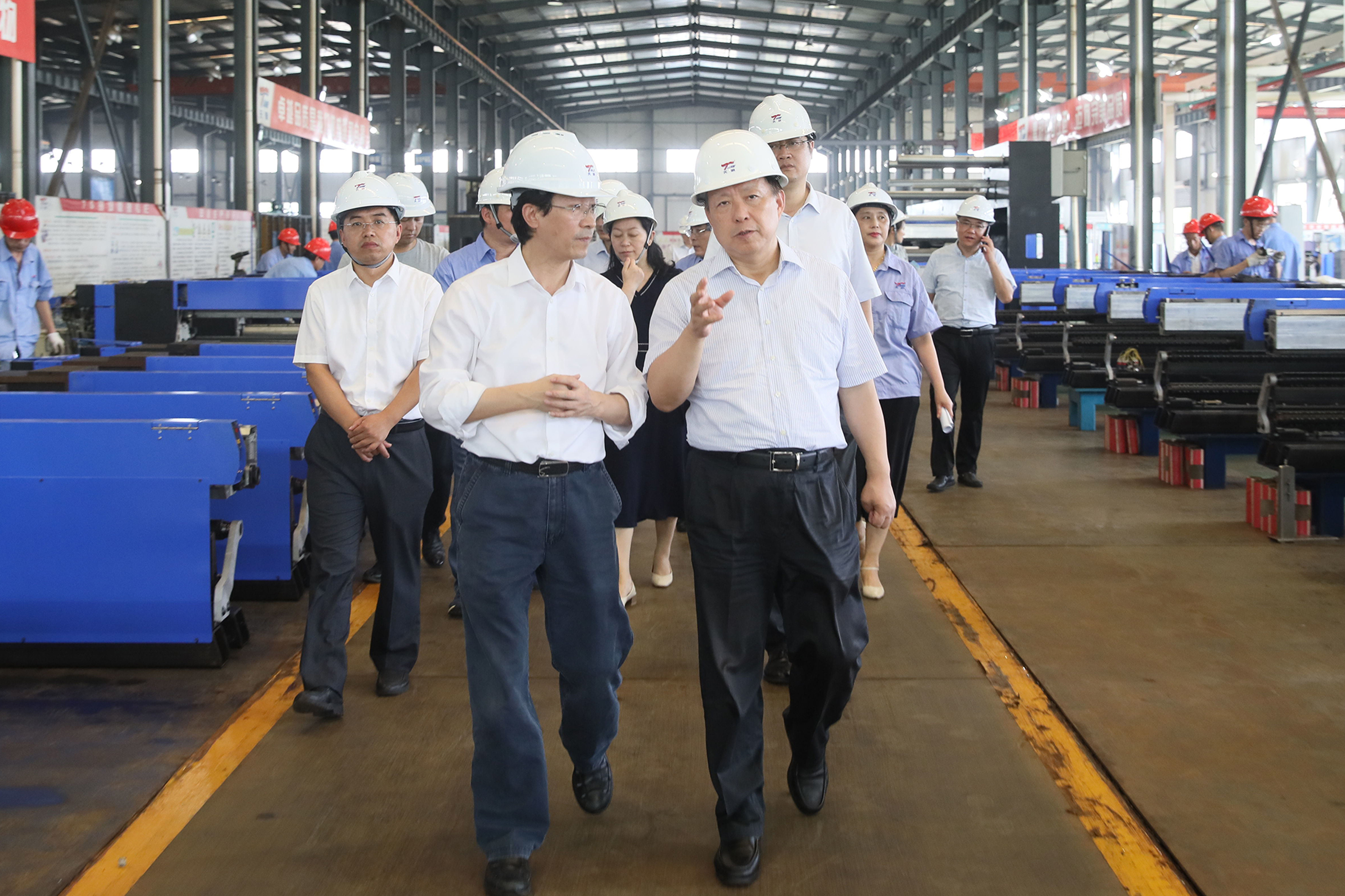 江苏省副省长方伟(右)考察德扑之星机械集团制造现场,对德扑之星机械立足高端、实施科技创新驱动的多项举措予以充分肯定。