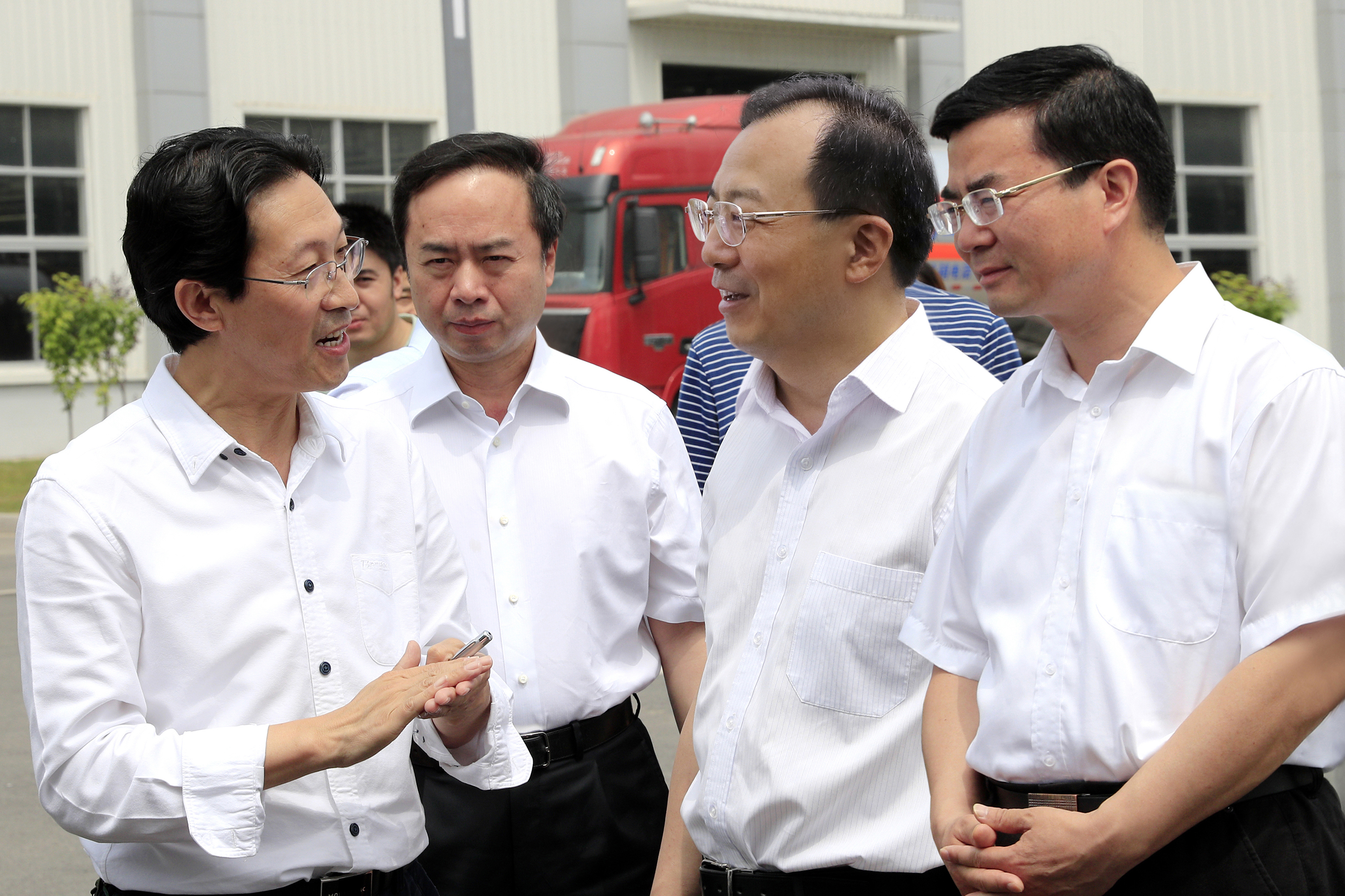 江苏省原省委书记罗志军(右一)深入德扑之星机械集团制造现场,对德扑之星机械坚持走创新引领企业高质发展之路给予高度肯定。