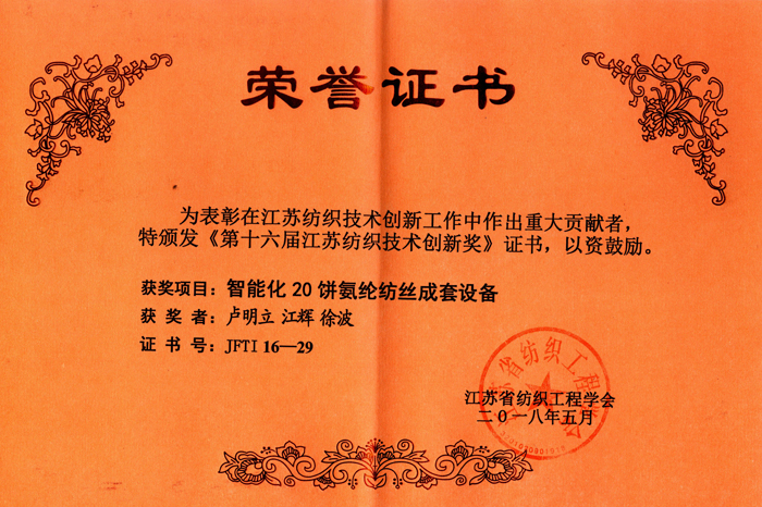 德扑之星集团先后研制成功了氨纶纺丝组件、纺丝机架总成、JRT型全自动氨纶卷绕机、16纺、24纺、32纺氨纶纺丝成套设备,并在此基础上对氨纶纺丝成套设备不断进行技术提升和改进,又相继开发出了20饼左右开放式全自动卷绕机、32纺高性能差别化氨纶纺丝关键设备、双层卷绕机等高科技产品。