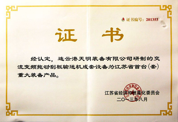 智能化交流变频刮板输送机成套设备 现代化采煤的高效智能重型输送装备,运用1140V和3300V变频一体驱动技术,分别填补国内、国际空白,适用于煤矿高产高效综采工作面需求,代表产品有:SGZ1000/3x1000、SGZ1000/3x1200、SGZ1400/3x1600、SGZ900/2x1000放顶煤(前后部)产品系列。其中国际上最大SGZ1400/3x1600变频刮板输送机成套设备输送量达每小时6000吨。