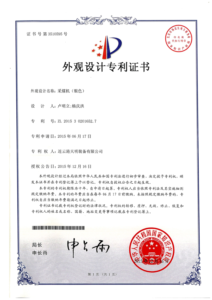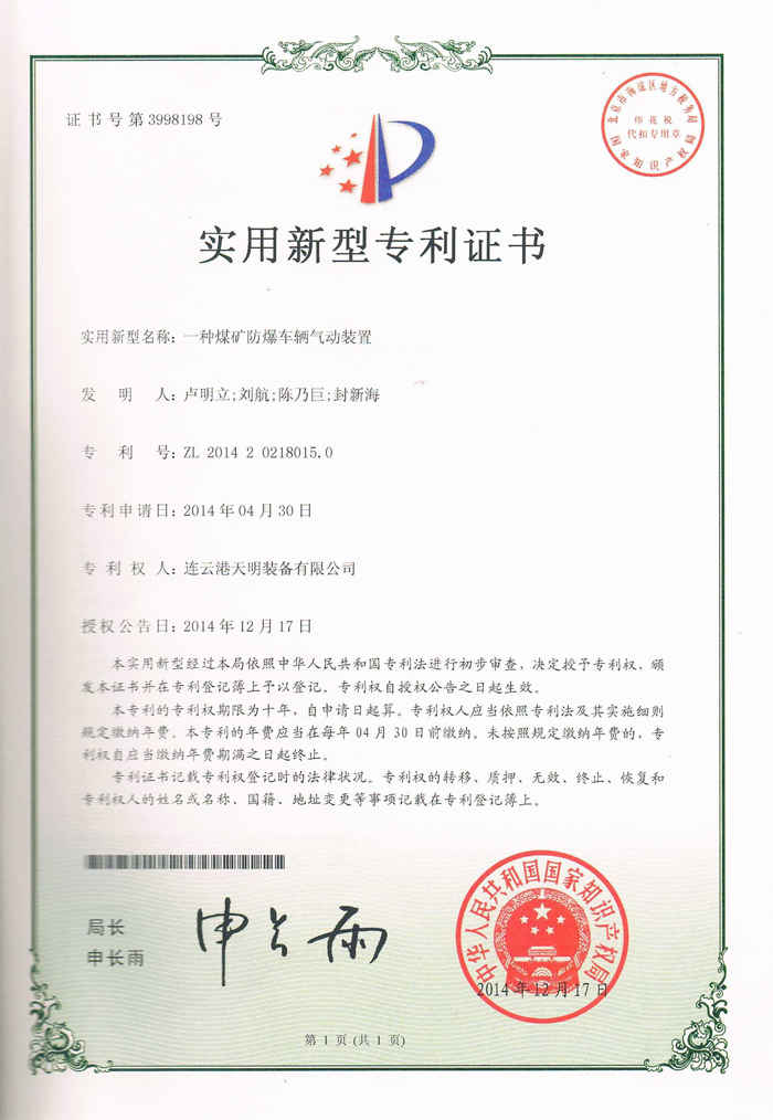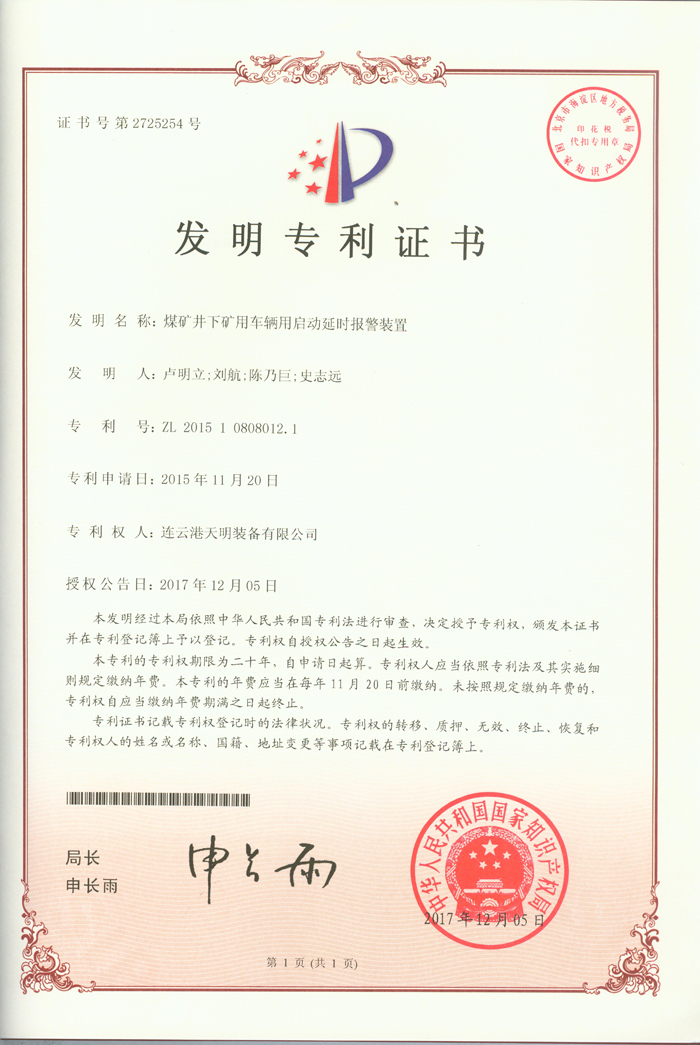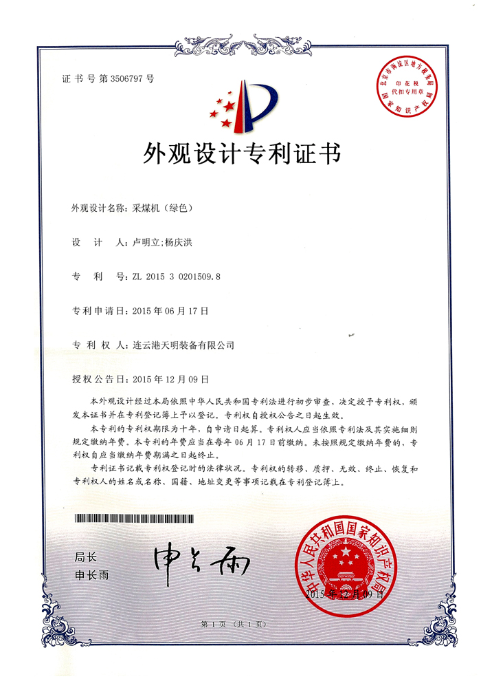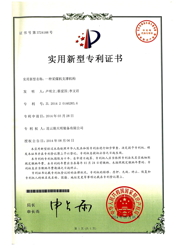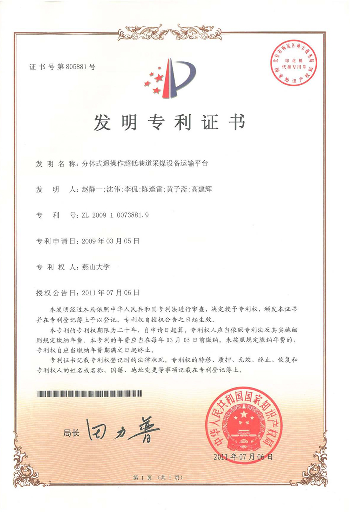 ● 2015年荣获中国煤炭工业发明专利一等奖