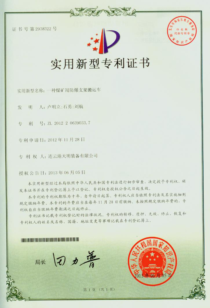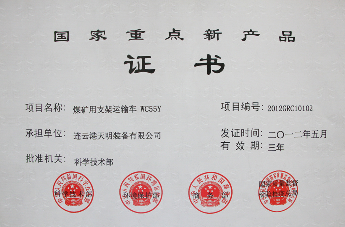 矿用井下重载动力平板车、大坡度支架搬运车等产品填补世界行业空白,具有完全自主知识产权,并通过国家级技术鉴定,技术成果国际领先。
